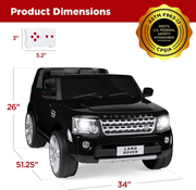 The 12V 3.7 MPH Two-Seater Licensed Land Rover Ride-on Car Vehicle with Parent Remote Controller is not just any ordinary ride-on car. It offers an exciting and thrilling adventure for your child and their friend or sibling with its two-person seating. They can comfortably cruise in this officially-licensed Land Rover and enjoy the ride together. Whether your child wants to take the wheel or you prefer to guide them, this rc ride on car offers both manual and remote control options. With the 2.4GHz remote control, you can easily take control and guide your child when necessary. The remote control features forward/reverse controls and speed selection, ensuring a safe and enjoyable ride. Smooth driving is guaranteed with the 2-wheel suspension and treaded tires of this ride-on car. Your child can experience a smooth and steady ride, whether they choose to cruise at a low speed of 1.8mph or go for a thrilling adventure at the max speed of 3.7mph. The choice is theirs! This ride-on car is not just about the driving experience. It offers additional features to enhance the fun. Kids can jam out to their favorite tunes by plugging in a device to the AUX input. The working LED headlights, horn, and startup sounds create a realistic and immersive ride that your child will love. When it comes to durability, this ride-on car is built smart and tough. Crafted with PP plastic and a tough metal frame, it is designed to withstand years of use and adventure. It even has space under the hood for storage and a rear bottom handle for easy transportation when not in use. Key Features: Two-person seating for an exciting ride with a friend or sibling Manual and remote control options for flexibility Smooth driving with 2-wheel suspension and treaded tires AUX player for jamming out to favorite music Working LED headlights, horn, and startup sounds for a realistic ride Durable construction with PP plastic and a tough metal frame Space under the hood for storage Rear bottom handle for easy transportation Specifications: Brand: Does not apply Color: Black Product Dimensions: 51.25 x 34 x 26 inches Country of Origin: China Item Weight: 74.3 pounds Manufacturer recommended age: 3 - 8 years Type: Does not apply ISBN: Does not apply EAN: 0705353908217