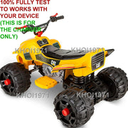 Rev Up Your Ride-On Adventure with the Ultimate 12V Wall Charger Imagine your little one’s face lighting up as they race across the driveway in their very own ride-on car or truck—until the battery gives up the ghost. You don’t have to ground the fun wheels. With this high-performance 12V AC adapter wall charger, you’ll power up those Kid Trax CAT Quad ride-on vehicles in no time, so playtime never stops. Why You’ll Love This Charger As a parent or gift-giver, you know the joy of watching a child zip around in a ride-on vehicle. But a drained battery can quickly put an end to those wide-eyed smiles. That’s where this charger comes in! It’s designed to deliver steady, reliable power to the Kid Trax CAT Quad models, so your young driver can keep exploring their backyard world without interruption. Key Benefits for You and Your Young Driver: Fast & Efficient Charging: Get more playtime and less waiting. This charger is optimized to deliver the right current to your 12V battery, so the vehicle is ready to roll in just a few hours. Smart Fuse Protection: Built-in surge protection safeguards against power spikes, keeping both you and your child safe during every charge cycle. Universal Battery Compatibility: Works seamlessly with Ni-Cd, Ni-Mh, and Li-Ion battery chemistries, giving you the flexibility to recharge a variety of 12V ride-on batteries. Save Battery Life: Intelligent charging management prevents overcharging, ensuring your ride-on car or truck battery maintains peak performance for longer. Compact & Portable: Lightweight design and standard US plug make it easy to store or take on the go—never worry about missing an outlet when your child is eager to drive. Perfect Fit for Kid Trax CAT Quad Models This charger is custom-tailored to four exciting ride-on models. We’ve created individual sections to help you identify the exact fit for your child’s adventure vehicle: 1. KT1214 – The Classic Yellow Powerhouse Bright yellow chassis with sturdy black rim accents Ideal for toddlers and young drivers aged 2–5 Single-speed forward and reverse controls that build confidence 12V sealed battery perfect for backyard tracks Charge time: Approximately 4–6 hours for a full charge. Why you’ll love it: This vibrant ride-on car turns every corner into a mini raceway. The dedicated charger ensures your little racer spends more time zooming and less time waiting for a full battery. 2. KT1214WM – White & Matte Chrome Racer Stylish white body with sleek matte chrome details Comfort seat with belt for extra security Powerful 12V electric motor that conquers gentle inclines Simple anti-slip tires for safe traction Charge time: Approximately 5 hours to full battery capacity. Why you’ll love it: With its modern look and comfortable ride, this ride-on truck is a parent’s dream and a child’s delight. The charger’s smart fuse keeps you worry-free during every overnight power-up. 3. KT1214TG – Tough Green Off-Roader Military green finish evokes real off-road adventures Sturdy roll bar and shatter-resistant windshield Dual motors for an extra boost in performance Durable tires built for grass, dirt, and pavement Charge time: Around 6 hours for a complete charge cycle. Why you’ll love it: This ride-on truck takes pretend play to the next level. Whether tackling the backyard “mud” or cruising on sidewalks, the fast-charging adapter ensures you’re never left without power for the next expedition. 4. KT1214TR – Trail-Ready Red & Black Cruiser Bold red with black trim for a dynamic look Realistic dashboard with horn and music buttons Heavy-duty suspension for a smooth ride Safety seat belt keeps your little driver secure Charge time: Approximately 5–6 hours for a full top-off. Why you’ll love it: Music, horn, and full suspension—this model feels like a real truck! Keep the fun going with a charger that’s engineered to protect the battery and your child’s ride-on toy. Easy to Use – Every Single Time Plug the adapter into any standard 120V outlet in your home. Connect the output cord to the battery’s charging port—polarity is keyed so you can’t get it wrong. Let the smart charger take over. LED indicator shows when the battery is fully charged. Unplug, disconnect, and you’re ready for action! Safety Meets Convenience This charger isn’t just about raw power; it’s built with your family’s safety in mind. The internal smart fuse guards against unexpected surges, while overcharge protection keeps the battery healthy. No special training is needed—simply follow the instructions, and you’ll have a fully charged ride-on vehicle in time for the next big backyard rally. Bring the Adventure Home Whether you’re firing up the ride-on car for a birthday surprise or gearing up for weekend fun, this 12V wall charger is the perfect companion. It’s compatible with all Kid Trax CAT Quad ride-on vehicles, giving you peace of mind that playtime only stops when you decide. Gift the power of continuous excitement and let every driveway become a racetrack! Technical Specifications: Input voltage: 120V AC, 60Hz (standard US household outlet) Output voltage: 12V DC Output current: 1.2A (smart charge) Cable length: 6 feet Dimensions: 4.5" x 2.5" x 1.5" Weight: 0.6 pounds Don’t let a drained battery stall the fun—invest in a reliable, high-quality charger that keeps the excitement rolling. Order your 12V wall charger today and fuel your child’s next ride-on adventure!