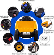12V Battery-Powered Excavator Ride-On Toy with Music, Headlights, and Tractor Design - Perfect Gift for Kids