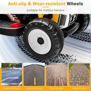 The 12V Battery Powered Kids Excavator with Adjustable Arm - Yellow is the perfect holiday gift for your child this year. With its realistic excavator appearance and cool headlights, this electric ride-on vehicle will instantly capture your child's attention. They can pretend to be a construction worker and control the angle and height of the digging basket to excavate sand in the backyard, park, or playground.This 12V battery powered excavator offers two driving modes for added fun. Kids can drive the digger themselves, or parents can use the 2.4G remote control to operate the car if their children are too young to drive independently. The rc ride on digger is designed with a vivid horn, engine sound, and built-in music to enhance the driving experience. It even has a USB slot and wireless connection, allowing you to connect it to your mobile phone and play your child's favorite songs and stories.Safety is a top priority with our electric construction vehicle. It is equipped with a safety belt, slow start technology, and wear-resistant, non-slip wheels. You can have peace of mind knowing that your child is safe while enjoying their ride-on adventure.Key Features:- Realistic excavator appearance with cool headlights- Adjustable arm for controlling the angle and height of the digging basket- Two driving modes: kids can drive or parents can use the remote control- Vivid horn, engine sound, and built-in music for a more immersive experience- USB slot and wireless connection for playing favorite songs and stories- Safety belt, slow start technology, and wear-resistant, non-slip wheels for added safetyProduct Specifications:- Brand: Honeyjoy- Color: Yellow- Material: PP, Steel- Size: 49" x 20" x 20.5" (L x W x H)- Type: Kids Ride On Go Kart- Style: Modern- Mount Type: Free Standing- Weight Capacity: 66 lbs- Weight: 27.5 lbs- Assembly Required: Yes- Firmness: Medium- Number of Items in Set: One-Piece- Assembly Status: Assembly Required- Department: Kids- Indoor/Outdoor: Indoor & OutdoorSet Includes:- 1 x 12V Kids Ride on Excavator- 1 x 2.4G Remote Control- 1 x ChargerGive your child the gift of adventure with the 12V Battery Powered Kids Excavator with Adjustable Arm - Yellow. They will have endless fun pretending to be a construction worker and exploring their surroundings with this exciting ride-on toy.