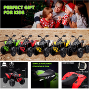 The 12V Battery Powered Kids Ride On Quad ATV Toy with LED Headlights is the ultimate toy for adventurous kids. With its powerful 12V/2X35W motor, this ride-on ATV provides a thrilling and stable driving experience. The fast speed of 5MPH (8KM/H) ensures that your little ones can have a blast while staying safe. Plus, the upgraded 7AH large battery allows for up to one hour of playtime, so the fun never has to stop. When it comes to safety, this remote control ride on ATV has you covered. The customized soft braking system ensures that emergency stops are smooth and safe, with virtually no impact on the driver. The suspension system of the four wheels provides excellent shock absorption, reducing bumps on rough roads. Your kids will feel comfortable and secure as they navigate any terrain. But the fun doesn't stop there. This ride-on ATV is packed with entertainment features to keep your kids entertained for hours. It has built-in stories and music, and can even connect to a mobile phone to play their favorite tunes. The USB and MP3 port allow for endless entertainment possibilities. And with the bright LED headlights, your little ones can explore even in the dark. Worried about where your kids can ride? Don't be. This ride-on ATV is equipped with wear-resistant wheels that can handle almost any terrain, from the beach to cement roads. Indoors or outdoors, your kids can have a blast wherever they go. The four wheels with a large diameter provide stability, so you can have peace of mind knowing that your toddlers are safe. Here are the specifications of the 12V Battery Powered Kids Ride On Quad ATV Toy with LED Headlights: Motor: 12V 2X35W Battery: 12V7AH Speed: 3-8KM/H Overall size: 42.5*25.2*28.3 INCH (L x W x H) Wheel diameter: 12.2 INCH Maximum Load: 66LBS (30KG) Playtime: 1-2 hours Charging time: 8-10 hours Other Functions: Music/Story Player, LED Lights, Radio, High/Low Speed (Remote) Safety is a top priority with the advanced slow start technology, which ensures a gentle start to prevent scaring your kids. The wide seat is designed for comfort, fitting well with the kids' body shape. And with the Easy-Drag 4WD technology, you can easily tow the ATV with the handle, making transportation a breeze. Not only is this ride-on ATV a thrilling toy, but it's also an ideal companion for your children. Its cool design and high-quality materials make it the perfect birthday gift for boys and girls. Let it create cherished childhood memories as it accompanies your kids on their adventures. Rest assured, this ride-on ATV is delicately crafted and certified by ASTM/CPSIA for your peace of mind. Get ready for endless fun and excitement with the 12V Battery Powered Kids Ride On Quad ATV Toy with LED Headlights. Order yours today and watch your kids' imaginations soar!