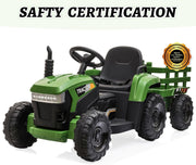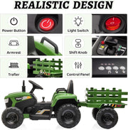 12V Battery-Powered Kids Ride-On Tractor Toy with Trailer and 35W Dual Motors