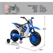 12V Blue Kids Ride On Motorcycle with Training Wheels - Electric Motorbike for Young Riders