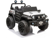 Product Description 12V Children's Ride-On Jeep with Rubber Tires, 4WD, and Wireless Control Introducing the 12V Children's Ride-On Jeep with Rubber Tires, 4WD, and Wireless Control - the ultimate kids ride-on vehicle for adventure-seeking youngsters. This incredible ride-on jeep comes in a variety of vibrant colors including Green, Black, Pink, Blue, White, or Red, allowing your child to choose their favorite shade to match their personality. With its 4x4 EVA rubber wheels, working headlamp lights, and suspension, this ride-on jeep offers a realistic and thrilling driving experience for your little ones. Key Features: 4x4 EVA rubber wheels for enhanced traction and durability Working headlamp lights to illuminate the path ahead Suspension system for a smooth and comfortable ride Doors that open for easy access and added realism Parental remote control for ultimate control and safety Kids foot pedal for interactive and engaging driving experience Progressive acceleration for a gradual increase in speed Safety seatbelt to keep your child securely strapped in 12volt battery for long-lasting power 12volt easy plug-in charger for convenient recharging 3 speeds to choose from for varying levels of excitement Product Specifications: Brand: Undisclosed Colors: Green, Black, Pink, Blue, White, or Red Wheels: 4x4 EVA Rubber Headlamp Lights: Working Suspension: Yes Doors: Openable Control: Parental Remote Control Foot Pedal: Yes Acceleration: Progressive Seatbelt: Safety seatbelt included Battery: 12volt Charger: 12volt easy plug-in charger included Speeds: 3