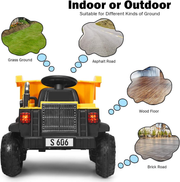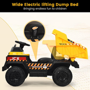 12V Dump Truck Ride-On with Remote Control, Music, Horn, USB, and AUX