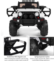 The 12V Electric Jeep Ride-On Car with Parental Remote Control and MP3 Player for Kids is the ultimate ride-on toy for adventurous children. With its attractive and fun features, this electric car provides hours of entertainment and excitement. It comes in a sleek white color, adding to its cool and realistic appearance. This remote control ride on car offers two modes of operation. In the parental remote control mode, parents can control the car using the remote control, allowing them to enjoy the ride-on experience with their child. In the battery-operated mode, children can use the foot pedal and steering wheel to operate the car themselves, promoting their independence and coordination. The car is equipped with an MP3 player, AUX input, USB port, and TF card slot, allowing you to connect your device and play your child's favorite music or stories. This brings an extra surprise to your baby and enhances their enjoyment during play. Safety is a top priority with this ride-on car. It features a soft start function, which provides gradual acceleration and reliable braking, preventing children from being frightened by sudden movements. The car also has four wear-resistant wheels made of superior PP materials, eliminating the hassle of inflating tires and ensuring a safer and smoother driving experience. The ride-on car has a cool truck-like appearance, with bright front and rear LED lights and double doors with a magnetic lock. It also has a spacious and comfortable seat with a multi-point safety belt, allowing your child to sit and play comfortably. The spring suspension system ensures a super smooth ride, even on uneven surfaces. This scientifically designed ride-on car is the perfect gift for your child's birthday or Christmas. It not only provides entertainment but also helps enhance your child's independence and coordination. The car has an overall dimension of 46.5"×31"×29" (L×W×H) and is recommended for children aged 3-7 years old. Key Features: Two modes of operation: parental remote control mode and battery-operated mode Forward and reverse functions with three speeds on the remote control MP3 player, AUX input, USB port, and TF card slot for playing music or stories Soft start function for gradual acceleration and reliable braking Bright front and rear LED lights Double doors with magnetic lock Comfortable seat with multi-point safety belt Wear-resistant and explosion-proof PP wheels Spring suspension system for a super smooth ride Product Specifications: Color: White Main Material: PP + Iron Overall Dimension: 46.5"×31"×29" Net Weight: 45 lbs Weight Capacity: 66 lbs Speed: 3-6 KM/H Battery: 12V 7AH×1 Get ready for hours of fun and adventure with the 12V Electric Jeep Ride-On Car with Parental Remote Control and MP3 Player for Kids. Order yours today and watch your child's imagination soar!