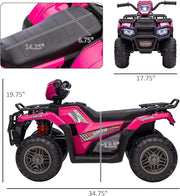 The 12V Electric Kids ATV Quad Car - Black, Suitable for Ages 3-6 Years, is the ultimate ride-on toy that will provide endless adventure and excitement for your little ones. This battery-powered quad ATV is not just a toy, but a companion that will create cherished childhood memories. Crafted with high-quality non-toxic PP materials, this ATV is safe for your children to ride and explore.Key Features:- Ideal Toy to Accompany Your Children: This battery-powered quad ATV is so cool that your kids are sure to love it. It's the perfect Christmas or birthday gift that will bring joy and excitement to your boys or girls. Let this ATV be their companion and create unforgettable childhood memories.- Slow Start System: The ride-on ATV features advanced slow start technology, ensuring a safe and smooth start for your kids. No need to worry about fast starts that may scare them. The wide seat is designed to provide maximum comfort and support for your little ones.- Rechargeable Battery for Lasting Enjoyment: Equipped with a powerful 12V battery and 2X30W strong motors, this ATV provides stable and powerful performance in any condition. With a fast speed of 2.5MPH, your kids can enjoy up to 2 hours of continuous playtime on a single charge. The battery takes 8 to 10 hours to fully charge, ensuring lasting enjoyment for your little adventurers.- Anti-slip & Wear-resistant Wheels: The ATV is equipped with anti-slip and wear-resistant wheels, allowing your kids to ride on various terrains such as the beach, rubber track, and cement road. Whether indoors or outdoors, your kids can have fun and explore everywhere they want. The spring suspension and 4 large-diameter wheels provide great stability and support for your toddlers.- Multi-Functional Fun: This kids' ride-on toy features a realistic outlook that mimics a real beach ATV, with fantastic details that will make your kids feel like they're driving a real car. The three cool LED headlights on the front illuminate the road ahead at night, providing the most authentic experience. The ATV also features an MP3, USB, and AUX port, allowing children to enjoy their favorite songs and music while riding.Product Specifications:- Color: Black- Recommended Age: 3-6 years- Material: PP and ABS plastic, Metal- Battery Type: 12V 4.5AH- Motor Type: 30W*2- Suspension: Spring Suspension- Maximum User Weight: 60lbs- Safe Speed: 1.5-2.5mph- Charging Time: 8-12 hr.- Run Time: 1-2 hr.- Music Function: AUX & USB port / Built-in music- Overall Size: 34 inches (L) x 18.11 inches (W) x 19.69 inches (H)- Certification: ASTM F963, CPSIAThis ATV is suitable for riding on any terrain, allowing your child to have a great time riding on outdoor roads and experiencing the joy of driving. It is easy to drive, making it suitable for toddlers aged 3-6, and your little driver will be able to handle it with ease. The ATV also features adjustable speed, allowing your child to choose between low or high speed depending on the terrain, with a speed range of 1.5-2.5 mph.With its powerful battery, durable construction, and exciting features, the 12V Electric Kids ATV Quad Car - Black is the perfect ride-on toy for your little adventurers. Let them embark on thrilling journeys and create unforgettable memories with this amazing ATV. Order now and watch their faces light up with joy and excitement!
