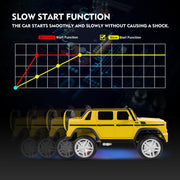 The 12V Electric Mercedes Benz Ride On Car for Kids with Lights, Music, and Remote Control Introducing the 12V Electric Mercedes Benz Ride On Car for Kids with Lights, Music, and Remote Control! This ride-on car is perfect for adventurous boys and girls over 3 years old. With its authentic driving experience and a range of exciting features, it's guaranteed to provide hours of fun both indoors and outdoors. Key Features: Built with non-toxic and durable plastic material for safe riding Equipped with a remote controller that contains 3 forward speeds and 1 reverse speed MP3 player connection, horn, and start-up sounds for a thrilling ride Spring suspension for all 4 wheels to minimize vibration Detachable battery for easy charging Lock buckles on the doors for added safety Anti-skid tires to prevent slipping Back storage space for toys, story books, and more Tie rod at the back of the car body for easy dragging by parents Can be driven manually or controlled by parents with the remote control Product Specifications: Speed: 2-4.5km/h Charge Time: 8-12 hours Car Battery Type: 12V 7Ah Charge: 2WD DC12v700mA Load Capacity: 66LBS Net Weight: 40LBS Recommended Ages: 3+ years Seat Dimension: 15.75" x 7.87" Overall Dimensions: 46"(L) x 28"(W) x 23"(H) Remote Controller: Forward, reverse, brake, left, right, speed indicator, speed select Package Includes: 12V Electric Mercedes Benz Ride On Car Mercedes Benz's Battery Remote Control Hardware Instruction Get ready for an unforgettable rc ride on adventure with the 12V Electric Mercedes Benz Ride On Car for Kids with Lights, Music, and Remote Control. Order yours today and let the fun begin!