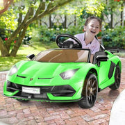 The 12V Electric Ride-On Car for Kids with MP3 Player and Remote Control - Perfect Gift for Hours of Fun! is not just any ordinary toy car. It is a high-quality ride-on truck car that will provide your child with endless hours of entertainment and excitement. With its powerful engine and sleek design, this officially licensed 12V Lamborghini toy car is perfect for any young car enthusiast.This rc ride on car features LED headlights, a horn, and engine sounds, making it feel like a real Lamborghini. The hydraulic power doors swing open, just like in a real Lamborghini, adding to the authenticity of the experience. The cool and stylish design of this car makes it an ideal gift for children who love cars.Specifications:- Battery: 12V7AH- Motor: 2*35W- Suitable age: 37-95 months- Loading capacity: 30kg (66lbs)- Product size: 107.5x63x42cm (42.3x25x16.5inch)- Speed: 3-5 km/h- Charge/Use time: charge 8-12h, use 2h- Charger: 12V- Remote control: AAA1.5V- Max-loading capacity: 30KG (66LBS)- Suitable age: 36~95 Months- Input AC: 100-240V- Out DC: 12V 1000mA- Fuse: Auto-reset fuse- Note: Can only sit with one personKey Features:- This 12V official-licensed upgrade kids ride-on roadster with swing-up scissor doors is a realistic model of a Lamborghini Aventador SVJ car, which will be an attractive choice for kids aged 6-12 and 3-8.- The motorized vehicle works on 4 wear-proof plastic wheels with a comfortable spring suspension system, providing a sturdy and stable ride.- Powered by 2 powerful 35W motors and 12V rechargeable batteries, this Lamborghini car for kids to drive offers up to 1-2 hours of safe and thrilling fun.- This cool and realistic Lamborghini would make a great gift for your kids.Function:- 2.4G remote control- Light control switch- Power display- Horn sound- High and low speed- Forward and backward- Hydraulic doorsPlease note that adult assembly is required for this toy car. It contains potentially hazardous sharp points, sharp edges, and small parts, so please keep it out of the reach of babies. Also, this toy car is not to be used in traffic.With its vibrant colors and attention to detail, this 12V Electric Ride-On Car for Kids with MP3 Player and Remote Control - Perfect Gift for Hours of Fun! is sure to capture the imagination of any child. Order yours today and watch your child's face light up with joy as they ride around in their very own Lamborghini.