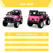 12V Electric Ride-On Car Truck for Kids with Remote Control, Safety Belt, and MP3 Player The 12V Electric Ride-On Car Truck for Kids with Remote Control, Safety Belt, and MP3 Player is the ultimate ride-on toy that will provide endless fun and excitement for your little ones. With its 2-seater design, this cool truck can accommodate 2 kids at a time, allowing them to share the driving fun together. The wide seats are equipped with safety belts and handrails to provide maximum protection for your children. Whether your kids want to drive themselves or you want to take control, this ride-on car offers both remote control and battery-operated modes. The rechargeable battery enables a realistic driving experience with features such as a power button, forward/reverse switch, high/low speed switch (2 forward speeds & 2 reverse speeds), and a foot pedal. The included remote control allows parents to control the moving direction, emergency braking, and 3 variable modes. But the fun doesn't stop there! This ride-on car is packed with multiple functions to keep your kids entertained for hours. Bright LED lights and a loud horn add excitement, while the dynamic music boosts their energy. The car also features a USB interface, TF slot, and AUX port, allowing your kids to enjoy their favorite music while riding. Safety is a top priority with this ride-on car. It adopts a shock absorber spring system, minimizing the impact and ensuring a smooth driving experience. The soft start and stop feature protects kids from any danger caused by excessive speed. The openable and lockable doors make it easy for kids to get on and off the car safely. No matter where your kids want to ride, this car is up for the challenge. The anti-slip wheels provide excellent wear resistance and slip resistance, allowing your kids to drive on various terrains. Whether it's a brick road, asphalt road, wood floor, or plastic runway, there are no limitations. Your kids can enjoy themselves both indoors and outdoors. Specifications: Age Level: 1-2 Years, 3-4 Years, 4-7 Overall Dimensions: 45 x 29 x 28 inches Brand: Unbranded Suitable Ages: 1-8 Years Battery: 12V Recommended Age Range: 1-8 Years Year: 2022 Theme: Vehicle Material: Iron Item Weight: 110 Pounds Assembly Required: Yes Get ready for non-stop adventure and excitement with the 12V Electric Ride-On Car Truck for Kids with Remote Control, Safety Belt, and MP3 Player. Order yours today and watch your kids' imaginations soar!