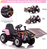 12V Electric Ride-On Excavator for Kids with Bluetooth and 3 Speeds