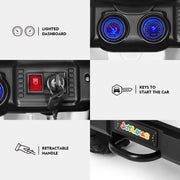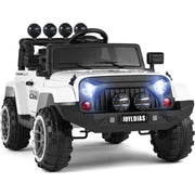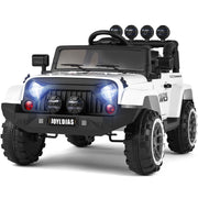12V Electric Ride-On Toy Truck for Kids with Remote Control, Music, LED Lights, and Storage The 12V Electric Ride-On Toy Truck for Kids with Remote Control, Music, LED Lights, and Storage Introducing our fantastic and functional 12V Electric Ride-On Toy Truck for Kids. This ride-on truck is perfect for children ages over 3 years old, providing them with an exciting and adventurous way to play. Equipped with a 2.4G remote control, parents can also join in on the fun and drive their children around. Key Features: TWO MODES TO OPERATE - Kids can operate the electric truck themselves through pedals and steering wheel, enjoying the thrill of driving at 2 different speeds. Parents can also take control using the 2.4GHz remote control, which offers three speeds. MULTIPLE AND JOYFUL FUNCTIONS - The built-in AUX port, USB, TF slot, music, and story options, as well as Bluetooth connectivity, enhance your child's driving journey and make it even more enjoyable. The high-bright LED lights add a cool factor, making your child feel like a superstar when driving at night. SAFETY AND COMFORT - The slow start function ensures a smooth and gentle acceleration, reducing the impact on children. The double lockable doors with safety locks and the seat with a safety belt provide the utmost safety and comfort for your child. Additionally, the rear tire can be used as extra storage space for toys, snacks, and more. DURABLE AND PORTABLE DESIGN - Made of non-toxic PP and iron, this electric rc ride on truck is built to last. The wheels with a spring suspension system are suitable for all kinds of roads, including asphalt, brick, and cement. The luggage handle makes it easier to transport the ride-on truck outdoors. PERFECT GIFT - With a 12V7AH large-capacity battery, overcharge and overload protection, and 2 powerful motors, this ride-on truck is sure to impress. Its size of 47"(L) x 28"(W) x 28"(H) and weight capacity of 66 lbs make it suitable for children of various ages. The speed ranges from 2.9 to 3.5 KM/h. The JOYLDIAS ride-on truck is the perfect present for your child's birthday or Christmas. Product Specifications: Color: White Battery: 12V7AH Charger: 12V700mA Motor: 390-16000*2 Play Time: 1-2 hours Loading Capacity: 66 lbs Speed: 2.9-3.5 km/h Size: 47''x28''x28'' Height Limit: 43.3'' Package Content: 1 x Electronic Toy Truck 1 x Hardware Bag 1 x Manual Instruction 1 x Bluetooth Remote Control