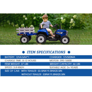 12V Electric Tractor Ride-On Toy with Trailer for Kids