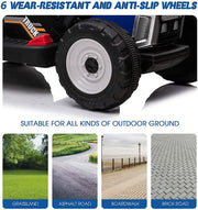 The 12V Electric Tractor Ride-On Toy with Trailer for Kids is the perfect toy for your little adventurer. This ride-on toy is designed to provide endless hours of fun and excitement. With its vibrant blue color and car theme, it will surely capture your child's imagination.Key Features:- Brand: Lonabr- Size: 53.5in x 19.5in x 20.5in (with trailer)- Custom Bundle: No- Color: Blue- Theme: Cars- Material: PP+PE- Recommended Age Range: 3+- Age Level: 3-4 Years, 4-7- Modified Item: NoProduct Specifications:- Power: 12V- Battery: Rechargeable- Maximum Speed: 2.5 mph- Weight Capacity: 66 lbs- Charging Time: 8-12 hours- Run Time: 1-2 hours- Trailer Capacity: 22 lbs- Number of Gears: 2 forward, 1 reverse- Remote Control: YesThe 12V Electric Tractor Ride-On Toy with Trailer for Kids is built to provide a safe and enjoyable riding experience. It features a sturdy construction made from high-quality PP+PE material, ensuring durability and longevity. The rc ride on toy is powered by a 12V rechargeable battery, which provides a maximum speed of 2.5 mph.With its two forward gears and one reverse gear, your child can easily maneuver the toy in any direction. The included remote control allows parents to take control of the ride-on toy for added safety. The trailer attachment adds an extra element of fun, allowing your child to transport their favorite toys or belongings.This ride-on toy is suitable for children aged 3 and above, making it a perfect gift for birthdays or special occasions. It is designed to provide a realistic and immersive driving experience, encouraging imaginative play and outdoor exploration.Let your child embark on exciting adventures with the 12V Electric Tractor Ride-On Toy with Trailer for Kids. Order now and watch as their imagination takes flight!