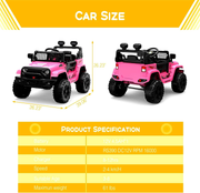 The 12V Electric Truck for Kids with Remote Control and Spring Suspension Introducing the 12V Electric Truck for Kids with Remote Control and Spring Suspension, a thrilling ride-on toy that will ignite your child's imagination and provide endless hours of fun and adventure. This pink truck is designed with safety and excitement in mind, featuring a range of impressive features and specifications that will make it the envy of the neighborhood. Key Features: Equipped with a safety belt to protect kids during driving Parents can use the remote control to activate the emergency brake function, ensuring the safety of their little ones Two driving modes: remote control mode for kids aged 1 to 3 years, and driving mode for kids aged 3 to 8 years Multi-function control console with easy one-key start, bluetooth speaker, horn, headlights, and high/low speed function Powerful 12V motor and traction tires for riding on different terrains Adjustable seatbelt, bright LED headlights, lockable doors, and grid windshield for an off-road style Certified with ASTM and CPSIA for safety and peace of mind Product Specifications: Brand: Does not apply Type: Does not apply Country of Origin: China Item Weight: 61 pounds Product Dimensions: 39 x 26 x 26 inches Color: Pink Manufacturer recommended age: 30 months - 8 years Release date: November 26, 2022 ISBN: Does not apply EAN: 0313045861889 The 12V Electric Truck for Kids with Remote Control and Spring Suspension is the perfect gift for your little one. Made with safe materials and packed with features, it will not only provide endless entertainment but also enhance the parent-child relationship. Whether it's a surprise Christmas gift or a birthday present, this remote control ride on truck is sure to bring joy and excitement to your child's life.