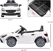 The 12V Kids Electric Ride on Car with Parent Remote Control - Battery Powered Fun for Little Ones is the perfect toy car for your adventurous little one. With its sleek design and exciting features, this ride-on car will provide hours of entertainment and fun.Introducing the Mercedes Slc 300 Ride-On, a licensed Mercedes Benz kids car that will make your child feel like they are driving the real thing. This rc ride on car comes with LED lights, a seatbelt, a steering wheel, a horn, and music, giving your child an authentic driving experience. The safety design of this car includes wide wheels and a shock-absorbing suspension system, ensuring a safe and smooth ride for your child. With a maximum speed of 3.1 mph, this car provides a secure and enjoyable experience for your little one. The headlights brighten the road in case dusk hits, and the seatbelt keeps your sweetie secure while making seatbelt wear a universal rule.But the fun doesn't stop there. This ride-on car also offers enjoyable driving with its eight built-in songs and seven stories. Your child can plug in a device to the AUX port, USB port, and TF card slot, allowing them to cruise around with their favorite songs. The wheel even features a button to sound a horn, adding an extra level of excitement to their playtime. This feature also adds safety by allowing them to get the attention of any other kids playing in front of the car.With both manual and remote control options, you can step in and control your child's play with the parental remote control. When they're ready, you can teach them the controls and let them take the wheel. The manual operation features two speeds, while the remote control features three, giving you full control over the car's speed and movement.The 12V Kids Electric Ride on Car with Parent Remote Control - Battery Powered Fun for Little Ones has the following specifications:- Overall Dimensions: 42.25" L x 24.5" W x 17.25" H- Seat size: 12.5" W x 7.5" D- Suitable for kids aged 3-6 years- Maximum load: 66 lbs- Certification: ASTM F963-17, CPSIA, SOR- Requires 2 x AAA batteries (not included)This ride-on car is designed to provide a thrilling and safe adventure for your little one. Get ready for endless fun and excitement with the 12V Kids Electric Ride on Car with Parent Remote Control - Battery Powered Fun for Little Ones.