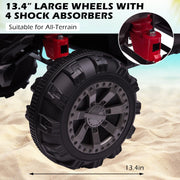 12V Kids Ride-On Off-Road ATV: Adventure Awaits Your Little Explorer! Imagine your child stepping into a world of thrilling outdoor adventures with the perfect ride-on companion designed just for them! This 12V Kids Ride-On Off-Road ATV is specially crafted for children aged 3 and up, supporting a weight capacity of up to 66 pounds. It’s not just a ride-on; it’s a gateway to imagination, freedom, and joyful family bonding. Whether your child is navigating a backyard trail or cruising along the driveway, this rugged yet charming ride-on truck fuels their curiosity while ensuring maximum safety and comfort. Engineered to inspire and built to last, this ride-on car brings the excitement of off-road driving right to your doorstep. Its vibrant green exterior and compact dimensions make it the ideal size for young adventurers, measuring approximately 46 inches long, 30 inches wide, and 28.7 inches high — perfectly sized for little hands and growing legs. Why This Ride-On ATV Will Be Your Child’s Favorite Toy Powerful Yet Safe 12V Dual Motors: Equipped with dual 12-volt motors paired with a robust 7AH rechargeable battery, this ride-on truck delivers up to an hour of continuous fun. Let your child experience the thrill of speed with selectable high and low gear settings that range from a gentle 1.9 mph to an exciting 3.7 mph. This means they can cruise confidently at a pace that suits their comfort and skill level, all within a safe speed range. Smooth Ride with Suspension System: The ATV features a suspension system on all four wheels, absorbing bumps and uneven terrain to provide your child with an ultra-smooth ride. This suspension not only enhances comfort but also improves control, allowing your little driver to navigate all kinds of terrain — from grass to gravel — with ease and confidence. Soft Start Technology for Gentle Acceleration: To keep your child safe and calm, the ride-on incorporates soft start technology. This prevents sudden jolts or rapid acceleration, protecting your child from being startled and helping them build driving skills gradually in a gentle, encouraging manner. Eye-Catching LED Headlights and Tail Lights: Add to the authentic driving experience with bright LED lights that illuminate the path ahead and enhance visibility. These lights make playtime even more magical during dusk or cloudy days and add a cool, adventurous vibe that kids love. Built-In Music and Audio Connectivity: Music lovers rejoice! This ride-on truck comes with a built-in USB/MP3 player and the option to connect to a phone, so your child’s favorite tunes or stories can accompany their ride. It’s an immersive, joyful journey filled with sounds that spark imagination and encourage longer play sessions. Durable All-Terrain Wheels: The sturdy 13.4-inch wheels crafted from high-quality, leak-proof polypropylene material mean there’s no need to worry about flat tires or maintenance. These large wheels provide excellent traction and stability on various surfaces, so whether it’s a park path or a bumpy backyard, the fun never stops. Comfort-Enhanced Seating: Designed with your child's comfort in mind, the rear seat includes a backrest and rear pedal, offering extra support and safety during play. It’s perfect for little riders who want to feel secure while cruising around in their ride-on truck. Perfect for Parents and Gift-Givers As a parent or gift-giver, you want toys that not only entertain but also nurture your child's development and keep safety at the forefront. This 12V Kids Ride-On Off-Road ATV ticks all those boxes. It encourages physical activity, builds motor skills, and sparks outdoor exploration, all while providing a secure, joyful environment for your child to grow and learn. Easy to charge with an included charger, the battery takes about 8 to 12 hours to fully charge, ensuring plenty of fun on each outing. Plus, with its premium polypropylene body, this ride-on truck can stand up to the rough and tumble play that kids love. You’ll appreciate the durable design that maintains its vibrant look and performance over time. Specifications at a Glance Color: Vibrant Green Body Material: Durable Polypropylene (PP) Battery: Rechargeable 12V 7AH Charging Time: 8-12 hours Maximum Weight Capacity: 66 lbs Speed Range: Adjustable 1.9 to 3.7 mph Recommended Age: 3 years and older Dimensions: 46" (Length) x 30" (Width) x 28.7" (Height) Package Includes 1 x Ride-On ATV 1 x Battery Charger 1 x User Manual Let Your Child’s Imagination Run Wild This ride-on truck is much more than a toy; it’s a catalyst for creativity and family connection. Picture your little one’s eyes lighting up as they embark on their first adventure, steering their own ride-on vehicle through pretend trails, racing imaginary rivals, or simply cruising alongside mom or dad. The combination of sound, lights, and motion creates an immersive experience that transforms any outdoor space into a world of exciting possibilities. Make the gift of exploration and fun this season with a kids ride-on that’s designed for safety, durability, and endless smiles. The ZEOPHOL 12V Kids Ride-On Off-Road ATV offers the perfect blend of excitement and reliability — a gift your child will cherish and remember as they grow.