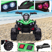 12V Kids Electric Ride-On Off-Road ATV Quad Car Toy with 2 Speeds and LED Lights Green