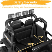 The 12V Kids Electric Ride-On Truck with Remote Control and Lights Introducing the 12V Kids Electric Ride-On Truck with Remote Control and Lights, a thrilling and adventurous toy car that will bring endless joy to your little ones. This ride-on truck is designed to provide a realistic driving experience while ensuring the safety and enjoyment of your children. With its sleek black color and impressive features, this ride-on truck is perfect for kids aged 3 years and up. Key Features: Realistic design with bright LED headlights Adjustable safety seatbelt for added security Two mode control: parent-operated with remote control or manual operation by kids Equipped with music, USB port, AUX input, TF card slot, and story features for multimedia fun Powerful rechargeable battery with 1-2 hours of run-time Double door with magnetic lock for easy access Product Specifications: Brand: Does not apply Product Dimensions: 49.2 x 31.5 x 31.5 inches Item Weight: 54 pounds Manufacturer recommended age: 3 years and up Type: Does not apply Realistic and Safe The 12V Kids Electric Ride-On Truck with Remote Control and Lights is designed to provide a realistic driving experience for your little ones. With its bright LED headlights, adjustable safety seatbelt, and easy start/stop button, this ride-on truck offers a safe and exciting adventure. The double door with a magnetic lock allows for easy entry and exit, while the spacious seat provides comfort during the ride. The wear-resistant and explosion-proof wheels ensure a smooth and stable driving experience. Two Mode Control With the 2.4G remote control, parents can operate the ride-on truck to ensure the safety of their children. The remote control allows for 3 adjustable speeds, parking, forward, and reverse modes. Alternatively, kids can drive manually with 2 speed options and stop by releasing the foot pedal. This feature not only enhances their hand and foot coordination but also gives them a sense of independence and control. Multimedia Fun The 12V Kids Electric Ride-On Truck is equipped with various multimedia features to enhance the fun and excitement. With music, a USB port, AUX input, TF card slot, and story options, your little ones can enjoy their favorite tunes and stories while cruising around. This feature adds an extra layer of entertainment and imagination to their playtime. Powerful Battery The ride-on truck is powered by a rechargeable 12V battery. After a full charge, the battery can last for 1 to 2 hours of continuous play. It is recommended to charge the battery for 24 hours before the first use and continue to charge for up to 8 hours when needed. The powerful battery ensures long-lasting fun and adventure for your children. Perfect Gift for Kids Crafted with safe materials and certified by ASTM F963, the 12V Kids Electric Ride-On Truck with Remote Control and Lights is a worthy gift for your little ones. It provides a perfect companion for indoor and outdoor play, creating unforgettable memories and special moments in their childhood. Let the fun begin with this exciting ride-on truck! Package Includes: 1 x Electric Car 1 x 2.4G Remote Control 1 x Charger 1 x Manual Specifications: Seat: 18.9" x 7.5" (W x D) Running Time: 1-2 Hours Charging Time: 8-12 Hours Maximum Speed: 4 mph Overall Dimensions: 49.21" x 31.5" x 31.5" (L×W×H) Maximum User Weight: 110lbs Recommended Ages: 3 to 8 years old Get ready for an exciting and thrilling adventure with the 12V Kids Electric Ride-On Truck with Remote Control and Lights. Order today and let your little ones embark on a journey of imagination and fun!