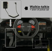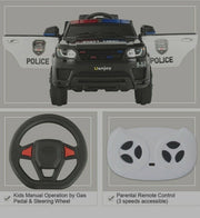 12V Kids Police Car SUV with Remote Control, Sirens, Megaphone, Lights, and Doors - AUX Compatible