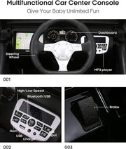 The 12V Kids Ride On Car with LED Lights, Music, and Remote Control - Perfect Gift for Little Drivers! is a lifelike and exciting ride-on truck that provides a thrilling driving experience for toddlers. This battery-powered toy car is designed to help young children understand the mechanics of automotive vehicles and develop their driving skills. With its one-button start design, realistic horn and engine sounds, foot pedal acceleration, and steering direction control, this rc ride on truck offers an easy and child-appropriate driving experience.Key Features:- Lifelike Driving Experience: The ride-on truck is designed to provide a realistic driving experience for toddlers. It features a one-button start design, horn and engine sounds, real foot pedal acceleration, and steering direction control.- Two Driving Modes: The toy car offers two driving modes. Children can operate the car independently using the steering wheel and pedals. For young babies, parents can use the 2.4G remote control to control the car and ensure their safety.- Happy Music, Happy Driving: The MOTION kids' car has a built-in music player and features USB/AUX ports and Bluetooth connectivity. Parents can play music, songs, nursery rhymes, and more to enhance their child's driving pleasure.- Multi-Functional Operation: The toy car is equipped with a rich and interesting control panel. It includes an oversized color LED display that shows battery level, music volume, speed mode, and more. The control panel also features speed adjustment, a simulated car-style horn, music playback and volume adjustment, forward and reverse control keys, and a one-touch start button for unlimited driving fun.- Upgraded Configurations & Shock Absorption: The driving truck is equipped with a strong 30W*2 motor that provides dual driving force and sufficient power. It also features a spring suspension device that reduces road bumps and ensures a comfortable driving experience for children. The upgraded 12V 7Ah battery offers longer playtime compared to common 4.5Ah batteries.- Safety Assurance & Durability: The kid's truck has passed ASTM F963 & CPSIA Children Product Certification, ensuring its safety and quality. It is equipped with a two-point safety belt and lockable double doors to prevent children from falling. The shock-absorbing and anti-skid tires are wear-resistant and explosion-proof, providing a safer guarantee for children's driving pleasure.Product Specifications:- Color: White/Black/Red/Pink- Recommended Age: 3-7 years- Material: PP and ABS plastic, metal- Battery Type: 12Volt 7AH- Motor Type: 30W * 2- Maximum User Weight: 67 lbs (30 kg)- Maximum Speed: 3-5 km/h (3 mph)- Charging Time: 8-12 hr- Run Time: 2-2.5 hours (depending on the child's weight and speed)- Music Function: AUX & USB port / Bluetooth / built-in music- Controller Batteries: 2 AAA batteries (not included)- Overall Size: 38.5 inches (L) x 23.5 inches (W) x 26 inches (H)With its vibrant colors and durable construction, this ride-on car is a perfect gift for little drivers. Let your child embark on exciting adventures with the 12V Kids Ride On Car with LED Lights, Music, and Remote Control!