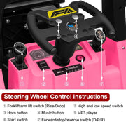 12V Kids Ride-On Forklift Toy Car with Horn for Pretend Construction Play