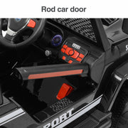 The 12V Kids Ride On Jeep with Remote Control, USB and Bluetooth Connectivity - Black is the perfect gift for your child's birthday or any special occasion. This ride-on toy is designed to provide endless fun and adventure for your little one. With its convenient operating modes, this remote control ride on jeep can be operated by foot pedal and steering wheel for independent play or by remote control for parental control. The wireless 2.4G Bluetooth remote control has a maximum control range of 15m, allowing you to easily maneuver the jeep from a distance. The handle at the tail of the jeep makes it super easy for you to move it around. The seat is designed with two small seats, perfect for one child to sit comfortably.This ride-on jeep offers a thrilling driving experience with its 2 forward speeds and 2 reverse speeds, which can be manually controlled. Additionally, the remote control allows for 3 different speeds. The car speed ranges from 1.86 mph to 4 mph, ensuring a safe and exciting ride for your child.Safety is a top priority with this ride-on jeep. The spacious seat is equipped with a seatbelt to ensure your child's safety while riding. Both the front and rear wheels are installed with suspension springs, providing a smooth and comfortable ride. The 11.4" traction wheels are also equipped with a spring suspension system, further enhancing the ride quality. The non-toxic plastic body, adjustable seatbelt, gear shift, and LED lights add to the overall safety and enjoyment of this ride-on jeep.In addition to its exciting features, this ride-on jeep is also equipped with an MP3 player, allowing your child to listen to their favorite music while cruising around. The lockable back suitcase provides a convenient storage space for your child's toys and belongings, making their ride even more enjoyable.Technical Details:- Battery: 12V 7AH * 1- Motor: 12V (2 x 3DW)- Charger: 12V 1000MA (Smart Charger)- Maximum Load: 66lbs- Charging Time: 8-12 hours (automatically controlled)- Applicable Age: 37-96 months- Car Speed: 1.86 mph - 4 mph- Product Size: 45.6"L X 326.7"W X 31.5"H- Riding Time: 1-2 hours (Depends on car speed)- Manufacturer recommended age: 36 months and upPackage Content:- 1*ride on Car- 1*Adapter- 1*Instructions- 1*Remote controlGet ready for endless fun and adventure with the 12V Kids Ride On Jeep with Remote Control, USB and Bluetooth Connectivity - Black. Order now and let your child experience the thrill of driving their very own ride-on jeep.