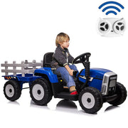 12V Kids Ride On Tractor Trailer with Lights - Battery Powered Toy Car