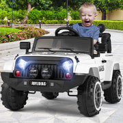 The 12V Kids Ride On Truck Car with Remote Control, LED Lights, 3 Speeds, and Music Storage Introducing our new fantastic and functional 12V Kids Ride On Truck Car, designed for your lovely children. This ride-on car is ideal for children over 3 years old, providing them with an exciting and adventurous way to explore their surroundings. Equally enjoyable for parents, the 2.4G remote control allows you to take control and drive your children around, ensuring their safety and enjoyment. The 12V Kids Ride On Truck Car features a comfortable seat and an MP3 aux, creating an enjoyable environment for your children as they play. With its 4-Wheels and spring suspension system, this remote control ride on truck car offers a smooth and comfortable ride. The seat belt and double lockable door design provide added safety, making it the perfect gift for both outdoor and indoor playing. Key Features: Two modes of operation: Kids can operate the electric car themselves using the pedals and steering wheel, enjoying the thrill of driving at 2 different speeds. Parents can also take control using the 2.4GHz remote control, which offers three speeds. Multiple and joyful functions: The built-in AUX port, USB, TF slot, music, and story options, as well as Bluetooth connectivity, enhance your child's driving journey, making it more enjoyable and entertaining. High-bright LED lights: The LED lights not only provide visibility but also add a cool factor to the driving experience, making your child feel super cool when driving at night. Safety and comfort: The slow start function reduces the impact of sudden acceleration on children, ensuring a safe and smooth ride. The door with a safety lock and the seat with a safety belt further enhance the child's safety and comfort. Additionally, the rear tire can be used as extra storage space for toys, snacks, and more. Durable and portable design: Made of non-toxic PP and iron, this electric vehicle for kids is built to last. The wheels with a spring suspension system are suitable for all kinds of roads, including asphalt, brick, and cement roads. The luggage handle allows for easy transportation and outdoor adventures. Product Specifications: Color: White Battery: 12V7AH Charger: 12V700mA Motor: 390-16000*2 Play Time: 1-2 hours Loading Capacity: 66 lbs Speed: 2.9-3.5 km/h Size: 47''x28''x28'' Height Limit: 43.3'' With its 12V7AH large-capacity battery, equipped with overcharge and overload protection, and powered by 2 powerful motors, the 12V Kids Ride On Truck Car ensures a long-lasting and thrilling ride for your children. It is the perfect present for your child's birthday or Christmas, providing them with endless fun and excitement. Package Content: 1 x Electronic Toy Car 1 x Hardware Bag 1 x Manual Instruction 1 x Bluetooth Remote Control
