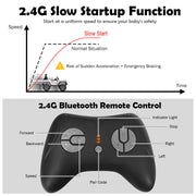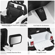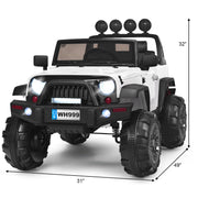 The 12V Kids Ride On Truck with RC Control, Spring Suspension, Light & Music, and Trunk in White is the perfect solution to keep your kids away from their addiction to video games. This toy car is a small version of a real luxury truck, providing an exciting and adventurous ride for your little ones. They can either sit on the car and drive it themselves or parents can take control with the 2.4G Bluetooth remote control. With its spacious seat, openable doors with magnetic lock, forward/reverse shifter, horn, and steering wheel, this ride-on truck offers a realistic and thrilling driving experience. The slow startup design ensures a gradual acceleration and reliable braking, providing the best protection for your child. The shockproof wheels and multi-point safety belt further enhance the safety features of this rc ride on truck. But the fun doesn't stop there! This ride-on truck is equipped with an AUX input, USB port, and TF card slot, allowing your child to connect external devices and enjoy their favorite music while riding. They can also press a button to switch and listen to various songs and stories, doubling their enjoyment. The 12V Kids Ride On Truck with RC Control, Spring Suspension, Light & Music, and Trunk in White is not only fun but also built to last. It features a sturdy PP material and metal frame, ensuring its durability. The luxury appearance, bright LED lights, and horn sound will surely attract your baby's attention. With its 4 explosion-proof wheels and spring suspension, this ride-on truck is designed for long-time use. It also has a trunk where your child can store their toys, snacks, and other belongings. The retractable handle makes it easy to move and transport, adding convenience for parents. The doors of this ride-on truck have a magnetic lock and can be opened, adding more fun and convenience for your child. The one-button start design provides enough convenience for your child to operate the truck easily. Specifications: Color: White Material: PP + Iron Overall Dimensions: 49" x 31" x 32" (L x W x H) Net Weight: 48 lbs Weight Capacity: 66 lbs Speed: 3-6 km/h Charge Time: 8-12 hours Battery: 12V 7 AH Recommended for Ages: 3-7 years old Package Includes: 1 x Kids Ride On Car 1 x 2.4G Bluetooth Remote Control 1 x Charger 1 x MP3 Cable 1 x Instruction With the 12V Kids Ride On Truck with RC Control, Spring Suspension, Light & Music, and Trunk in White, your child will have endless hours of fun and adventure. Get them off the screens and let them explore the world in their very own ride-on truck!