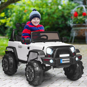 12V Kids Ride On Truck with RC Control, Spring Suspension, Light & Music, and Trunk in White