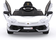 The 12V Licensed Lamborghini Electric Ride-On Car for Kids: The Ultimate Driving Experience Get ready for an exhilarating adventure with the 12V Licensed Lamborghini Electric Ride-On Car for Kids. This officially licensed Lamborghini ride-on car is designed to provide the ultimate driving experience for young car enthusiasts. With its sleek design and realistic features, this rc ride on car is sure to turn heads and provide hours of fun. Licensed Lamborghini Design LED headlights, horn, and engine sounds Hydraulic powered doors that swing open just like the real Lamborghini Battery charging time: 8-12 hours Two Driving Modes Parental remote control: Parents can control the car with the remote control, including 3 speeds shifting, making it suitable for young children Kid's Manual operate: Kids can operate the car by themselves using the foot pedal and steering wheel, with 2 speeds shifting Cool Lights and Sounds Built-in music and story Bluetooth, AUX cord, TF port, and USB port to play your own music Brilliant LED front and rear lights for a cool cruise Premium Performance Powered by 2 powerful 25W motors and 12V rechargeable batteries Provides a safe and thrilling ride with speeds of 1.86~3.12mph Enjoy up to 1-2 hours of continuous playtime Best Gift for Kids Made of safe materials Equipped with multiple functions to enrich your little one's life Enhance parent-child relationship through play Certified with ASTM and CPSIA Perfect as a Christmas or birthday gift Product Specifications Power: 12V 7AH Motor: Dual 12V Color: White Sheet Count: 30 Manufacturer recommended age: 3 years and up Item Form: Battery