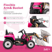 12V Pink Battery-Powered Excavator with Adjustable Arm for Kids