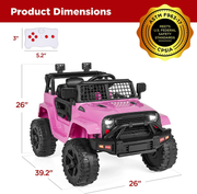 12V Pink Ride-On Truck Toy Car with 3 Speeds and LED Lights for Kids