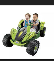 The 12V Power Wheels Dune Racer Extreme Electric Ride-On Car for Children GREEN Brand New is the ultimate adventure machine for kids aged 3 to 7 years. With its stylish green frame and cool "chrome" accents, this ride-on toy will turn heads as your little one cruises around in style.
