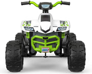 The Power Wheels Kids Electric Ride-On Racing ATV Quad Bike itself is a thrilling and adventurous ride-on toy that will take your child's playtime to the next level. With its realistic quad styling and awesome graphics, this ATV looks just like a real off-road vehicle, sparking your child's imagination and creativity. Whether your little one is zooming around the backyard or exploring the great outdoors, this ride-on ATV can handle it all. It can drive forward at speeds of 3 and 6 mph (4.8 and 9.6 km/h), giving your child the thrill of a fast-paced race. And when they need to reverse, it can go at a speed of 3 mph (4.8 km/h) in reverse. This ATV is designed to conquer various terrains, from hard surfaces to wet grass. So no matter where your child wants to ride, this ride-on ATV will provide endless fun and excitement. For added safety, this ATV features a parent-controlled, high-speed lockout, allowing you to control the maximum speed your child can ride. It also has Power-Lock brakes, ensuring quick and reliable stopping power when needed. The Power Wheels Kids Electric Ride-On Racing ATV Quad Bike is suitable for children ages 3 to 7 years, with a maximum weight capacity of 65 lbs (29.5 kg). It comes in a vibrant White-Green color combination, as shown in the photo, adding a cool and stylish touch to your child's outdoor adventures. Key Features: Ride-on vehicle with realistic quad styling and awesome graphics Drives forward at 3 and 6 mph (4.8 and 9.6 km/h) max. speed Drives in reverse at 3 mph (4.8 km/h) max. speed Can drive on hard surfaces and wet grass Parent-controlled, high-speed lockout Power-Lock brakes for quick and reliable stopping Product Specifications: Brand: Power Wheels Max Weight Capacity: 65 lbs (29.5 kg) Custom Bundle: No Color: White-Green (as in photo) Theme: Cars Recommended Age Range: 36 months - 7 years Age Level: 5-7 Years, 3-4 Years, 4-7 Modified Item: No