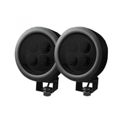 RECON Part # 264501BK - LED DRIVING LIGHTS - 1800 Lumen LED Driving / Utility Light Kit w Circle Shaped Housing - Four White 12W 6500K LED's in Each Light - Sold as a Pair - Black Chrome Internal Housing with Clear Lens w/ Black Housing - Housing Dimensions are (LxWxH) 4.65" x 2.75" x 4.65"