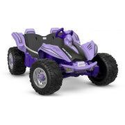 With its extra-wide tires and low profile design, the Power Wheels Dune Racer Extreme is built to handle any terrain. The open cockpit design comfortably accommodates two riders, making it perfect for thrilling adventures with friends. And for added convenience, there's a hidden storage compartment under the hood to store all their gear. The 12-Volt rechargeable battery provides hours of safe fun, while the Power-Lock brakes ensure a secure and controlled ride. Get ready to embark on an exciting off-road journey with the 2-Person Battery-Powered Dune Buggy Ride-On Toy!