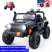 The 2-Seater 12V Ride-on Truck for Kids with Remote Control, LED Lights, FM Radio, and Bluetooth is the perfect ride-on toy for your little adventurers. This remote control ride on truck is designed with two seats, allowing two little kids to play together and create unforgettable memories. The seats are equipped with seatbelts, ensuring that your kids can sit on the car smoothly and drive safely. Powered by a long-lasting 12V 10AH battery and driven by four wheels, this ride-on truck provides your kids with a thrilling and enjoyable driving experience. They can easily start the car with just one switch and take control of the pedal and steering wheel to drive around themselves. But don't worry, parents can always override the little driver and safely guide their kids when necessary using the remote control. But that's not all! This ride-on truck also comes with a music feature that will keep your kids entertained for hours. With onboard music, headlights, FM radio, and Bluetooth connectivity, your little adventurers can jam out to their favorite tunes while cruising around. They can even switch the music using the button on the car, giving them full control of their ride-on experience. The 2-Seater 12V Ride-on Truck for Kids with Remote Control, LED Lights, FM Radio, and Bluetooth is crafted with a durable PP plastic body, ensuring its longevity and ability to withstand the adventures of your little ones. It features a 2-seater design with seatbelts and has a maximum load capacity of up to 220lbs, making it suitable for kids of all ages. Specifications: Brand: Klökick Manufacturer Part Number: Does Not Apply Battery: 12V 10AH Material: Eco-Friendly PP, Metal Theme: Cars Product Size: 48.6*27.6*28 inch Charger: 12V/35W Speed: 3-5 mph Charge Time: 8-12 Hours Run Time: 2 Hours Remote Control: Yes Recommended For Ages: Kids & Adults Recommended Age Range: 3-12 Years Get ready to embark on thrilling adventures with the 2-Seater 12V Ride-on Truck for Kids with Remote Control, LED Lights, FM Radio, and Bluetooth. It's the perfect gift for birthdays, Thanksgiving, Christmas, New Year, and any occasion that calls for excitement and fun!