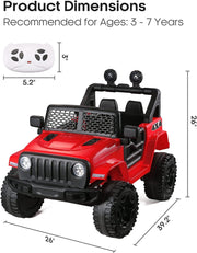 The 2-Seater 12V Ride On Truck Toy for Kids with Parent Remote and LED Lights is the perfect ride-on toy car for adventurous kids who are eager to experience the thrill of driving. With its lifelike design and realistic features, this rc ride on truck provides a fun and educational opportunity for toddlers to learn about automotive mechanisms and develop their driving skills.Featuring a one-button start design, horn and engine sounds, real foot pedal acceleration, and steering direction control, this ride-on truck offers an easy and realistic driving experience. The bright LED lights and rearview mirror add to the authenticity, making your child feel like they're driving a real car.This ride-on truck offers two driving modes to suit your child's age and skill level. Older children can operate the toy car independently using the steering wheel and pedals, while younger babies can be safely controlled by parents using the 2.4G remote control. The remote control allows parents to control the forward, backward, left, and right steering, with an emergency brake button for added safety.But the fun doesn't stop there! The MOTION kids' car also features a built-in music player with USB/AUX ports and Bluetooth connectivity. Your child can enjoy their favorite music, songs, and nursery rhymes while driving, enhancing their driving pleasure.The control panel of this toy car is rich and interesting, with an oversized color LED display that shows battery level, music volume, and speed mode. It also includes features like speed adjustment, a simulated car-style horn, music playback, volume adjustment, forward and reverse control keys, and a one-touch start button, providing unlimited driving fun for your child.Equipped with a powerful 30W*2 motor, this driving truck provides dual driving force and sufficient power for an exciting ride. The whole vehicle is equipped with a spring suspension device, reducing road bumps and making the driving experience more comfortable for children. The upgraded 12V 7Ah battery lasts longer than the common 4.5Ah battery, giving you and your kids more time to enjoy the ride.Safety is a top priority with this kid's truck. It has passed ASTM F963 & CPSIA Children Product Certification, ensuring its quality and safety. The two-point safety belt and lockable double doors prevent children from falling out of the car, providing added security. The shock-absorbing and anti-skid tires are wear-resistant and explosion-proof, offering a safer guarantee for your child's driving pleasure.Specifications:- Color: White/Black/Red/Pink- Recommended Age: 3-7 years- Material: PP and ABS plastic, metal- Battery Type: 12Volt 7AH- Motor Type: 30W *2- Maximum User Weight: 67 lbs (30 kg)- Maximum Speed: 3-5 km/h (3 mph)- Charging Time: 8-12 hr- Run Time: 2-2.5 hours (depending on the child's weight and speed)- Music Function: AUX & USB port / Bluetooth / built-in music- Controller Batteries: 2 AAA batteries (not included)- Overall Size: 38.5 inches (L) x 23.5 inches (W) x 26 inches (H)With its exciting features and durable construction, the 2-Seater 12V Ride On Truck Toy for Kids with Parent Remote and LED Lights is the ultimate ride-on toy car for your child. Let them embark on thrilling adventures and create unforgettable memories with this amazing ride-on truck.