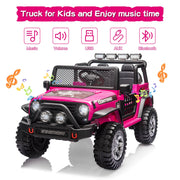 The 2-Seater Electric Ride-On Jeep for Kids with MP3 and Remote Control is the ultimate ride-on toy truck for adventurous kids. With its cool outlook, oversized wheels, bright headlights, and 4 roof lights, this car is truly eye-catching. It is the perfect present for kids aged 3 to 6 years old, with a weight limit of 66 lbs. Authentic experience is guaranteed with the push-start button and joystick steering wheel, just like a real car. The 2 driving modes, hand control and 2.4G remote control, provide flexibility and convenience. The remote control even overrides the handle control for added safety. But the fun doesn't stop there! This rc ride on truck also comes with additional functions such as an MP3 player, USB interface, and TF card slot. Your little one can enjoy their favorite music while cruising around. The built-in music adds to the excitement. Safety is a top priority with the 2-Seater Electric Ride-On Jeep. It features a 4-point safety belt for secure riding. The soft starting ensures a smooth and gentle acceleration, while the 4-wheel spring suspension provides a comfortable and stable ride. Assembly is a breeze with the step-by-step instruction included. You'll have this ride-on truck ready to go in no time. Specifications: Color: Pink Material: PP + Iron Overall Dimension: 47" (L) x 31" (W) x 30" (H) Recommended Age: 3-6 Years Old Net Weight: 45.1 lbs Maximum Weight Capacity: 66 lbs Charge Time: 8-12 Hours Operation Time: 1-2 Hours Speed: 1.86-3.73 mph Charger Type: 12V 1000MA Motor Type: 12V x 2 Battery Type: 12V 7AH x 1 Package includes: 1 x Kid Ride on Truck Car 1 x 2.4G Remote Control 1 x Charger 1 x Instruction Get ready for endless fun and adventure with the 2-Seater Electric Ride-On Jeep for Kids with MP3 and Remote Control. Order yours today!