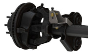 Delete the factory press in Ball Joint and transition to a double shear 1/4" bracket. While the bracket is located and reinforced by the factory casting, welding the bracket to the axle tube is required.