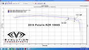 Evolution Powersports has done it again - programming for the Polaris RZR 1000S has yielded excellent horsepower gains! Timing, fueling, torque limit modifications, rev limits and speed limits have all been changed to extract the most power and make the vehicle as fast as possible. A 5 wheel horsepower increase with just tuning and an 11 wheel horsepower gain with intake & exhaust! We also build additional safety into our tune by lowering the fan on temperature by 17 deg F. The OEM fan on temperature is is too high (well over 200 deg F). In addition the fan on/off temperatures can be set for each customer depending upon where they live and the conditions typically ridden in.