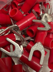 22-18 GA RED FORK SPADE TERMINAL VINYL INSULATED CRIMP WIRE CONNECTOR