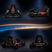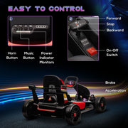 Introducing the Ultimate 24V Electric Go Kart Adventure for Kids Aged 6-12! Experience the thrill of speed, safety, and interactive fun with this cutting-edge electric go-kart. Our Jet Black masterpiece brings excitement to young hearts while ensuring a secure ride that parents can trust. Buckle up and let's explore the features that make this go-kart a must-have for young adventurers: Unleash the Thrill: Dual 24V motors deliver exhilarating speeds of up to 7.5 mph, providing an unforgettable racing experience for your young speedster. Mastering Any Terrain: Equipped with EVA wheels, our go-kart conquers various terrains with ease. No path is too challenging, and fun knows no limits. Sound of Excitement: Let your child enjoy the thrill of a horn, creating excitement as they cruise along. Music buttons add a touch of rhythm to their adventure, letting them roll to their own beat. Power at a Glance: A power indicator keeps you informed about the battery status, ensuring uninterrupted fun while preventing unexpected stops. Parental Peace of Mind: Choose between two-speed settings. Safety First: The go-kart features a secure five-point safety belt and a tail light, ensuring your child's safety during every ride. Crafted for Joy: Designed in sleek Jet Black, this go-kart boasts an aesthetic that appeals to both kids and parents alike. Specifications: Material: Crafted from sturdy polypropylene and steel, ensuring durability for endless adventures. Dimensions: Overall measurements of 45.75" L x 29.25" W x 22.75" H provide a spacious and comfortable ride. Seat Comfort: Generously sized seat dimensions of 10.25" W x 9.5" D x 7.75" H ensure comfort during thrilling rides. Battery Power: Equipped with a 24V, 7AH battery for extended playtime. Charging Flexibility: A first charge of 4-6 hours and regular charging of 8-12 hours keep the excitement going. Speed Versatility: Reach speeds ranging from 3.7 to 7.5 mph, catering to various skill levels. Weight Capacity: With a weight capacity of 110 lbs., the go-kart accommodates a wide range of young adventurers. Age Certification: Suitable for kids aged 6+, recommended for ages 6 to 12, compliant with safety standards. Certified Safety: Meets SOR certification standards, assuring safety and quality. Item Identification: Look for item label 370-234V80BK to experience the ultimate go-kart adventure. Note: Ensure constant supervision while kids ride. Please note that 2 AAA batteries are not included. Elevate your child's playtime with a go-kart that combines speed, safety, and excitement in one unbeatable package. Let them embark on thrilling adventures while you watch with pride and peace of mind. Get ready to ignite the spark of adventure with our 24V Electric Go Kart – the ultimate ride for the next generation of young explorers.