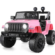 The 24V/12V Kids Electric Ride On Jeep with Remote Control, LED Lights, and MP3 Player - Limited Time Offer! is the perfect gift for your adventurous children. This kids' motorized ride-on SUV is designed to provide entertainment, hands-on education, and safety all in one fantastic driving experience. With its parental remote control, LED lights, Bluetooth connectivity, MP3 player, and wider seat with an adjustable seat belt, this 24v ride on toy is sure to bring joy to your child's playtime. Featuring lifelike driving experience, this ride-on truck allows your child to understand the automotive mechanism and develop driving skills. The one-button start design, horn and engine sounds, real foot pedal acceleration, steering direction control, bright LED lights, and rearview mirror all contribute to an easy, realistic, and child-appropriate driving experience. This ride-on toy offers two driving modes. Your child can operate the toy car independently using the steering wheel and pedals. For younger children, parents can use the 2.4G remote control to control the car and ensure their safety. The remote control allows you to control the forward, backward, left, and right steering, with an emergency brake button and speed adjustment button for three speeds.The fun doesn't stop with the driving experience. The MOTION kids' car has a built-in music player and features USB/AUX ports and Bluetooth connectivity. You can play your child's favorite music, songs, and nursery rhymes while they drive, enhancing their driving pleasure. The control panel is rich and interesting, with an oversized color LED display showing battery level, music volume, speed mode, and more. It also includes a simulated car-style horn, music playback, volume adjustment, forward and reverse control keys, and a one-touch start button for unlimited driving fun.This ride-on truck is equipped with a high-performance 30W*2 dual drive motor, providing dual driving force and sufficient power. The vehicle is also equipped with a spring suspension device, reducing road bumps and making driving more comfortable for children. The upgraded 12V 7Ah battery lasts longer than common batteries, giving you more time to play with your kids.Safety is a top priority with this ride-on toy. It has passed ASTM F963 and CPSIA Children Product Certification, ensuring its quality and safety. The two-point safety belt and lockable double doors prevent children from falling and improve safety. The shock-absorbing and anti-skid tires are wear-resistant and explosion-proof, providing a safer guarantee for children's driving pleasure.Specifications:- Color: Pink / Black / Green / Red- Recommended Age: 3-7 years- Material: PP and ABS plastic, metal- Battery Type: 12Volt 7AH- Motor Type: 30W *2- Maximum User Weight: 67 lbs (30 kg)- Maximum Speed: 3-5 km/h (3 mph)- Charging Time: 8-12 hr.- Run Time: 2-2.5 hours (depending on child's weight and speed)- Music Function: AUX & USB port / Bluetooth / built-in music- Controller Batteries: 2 AAA batteries (not included)- Overall Size: 38.5 inches (L) x 23.5 inches (W) x 26 inches (H)- Overall Height: 28.35 inches- Overall Length: 39.37 inches- Overall Width: 25.59 inchesNote: Always keep the child in view when they are in the vehicle. The car does not function while charging, so please unplug the power cord if not in use for a long period.Package Includes: Ride on Car + 2.4G Remote Control + Charger + User ManualWith its high-performance features, safety assurance, and durability, this ride-on toy is the perfect choice to accompany your child's growth and guard their driving dream. Order now and give your child the ultimate ride-on experience!