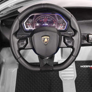 The 24V 2 SEATS AUTHENTIC LAMBORGHINI AVENTADOR SVJ KIDS RIDE-ON SPORTS VEHICLE WITH LIGHTS AND REMOTE CONTROL Introducing the Moderno Kids 2021 edition of the 24V 2 SEATS AUTHENTIC LAMBORGHINI AVENTADOR SVJ KIDS RIDE-ON SPORTS VEHICLE WITH LIGHTS AND REMOTE CONTROL. This cherry red ride-on car is the ultimate thrill for young adventurers aged 3-6 years old. Approved and manufactured under the official license from Automobili Lamborghini S.p.A, this battery-powered ride-on car is designed to provide an exhilarating experience while maintaining the highest safety standards. Key Features: 2 Seater Ride-On Car for Toddlers under 4 Years or Single Rider 3-6 Years Old Maximum combined Rider(s) Weight of 100 lb Removable Large Capacity 24V Power Battery with Overload Protection 2 Powerful Custom 775 Motors 2 Forward Speeds (3 Speeds on Parental Remote) 1 Reverse Speed Maximum Speed 2-5 Mph Designed for Riding on Paved Surfaces (Not for riding on Sand, Mud or Grass) Forward / Park / Reverse Shifter Switch Lights ON/OFF Switch Full Function Long Range 2.4Ghz Parental Remote Control with remote STOP function Soft Start and Electric Brake System for Gradual Acceleration and Reliable Braking Upgraded drive train with 4 stage gearboxes using hybrid steel/nylon gears with bearings and powerful custom dual 775 motors 2 Way Adjustable Soft Perforated Vegan Leather seat with 2 Way Convertible Safety Seat Belt (Can be used as Single Safety Belt for 1 Child or 2 Separate Seat Belts for 2 Kids) Zero Maintenance EVA Foam Rubber Tires with LED Lights (Provide Good Traction and Comfortable Quiet Ride) Realistic working LED Headlights, Tail Lights / Dashboard Lights and Gauges Openable Doors Front + Rear Spring Shock Absorbers Underbody Soft Glow Blue LED Light Kit (Preinstalled) Integrated Bluetooth MP3 Player with Wireless Music Streaming, FM Radio and AUX MP3 Audio Input Plays files from Micro SD card, USB Flash Drive or external devices like iPod, iPad, iPhone or Android Phones Horn Sound Buttons on the Steering Wheel On-screen Digital Battery Voltage Meter Removable Moderno Kids Rubber Floor Mats (Keeps your Toy Car Clean) Custom Fitted Moderno Kids Car Cover (Protects your Toy Car in Storage) Integrated Handlebar (Under Front Bumper) and folding caster wheels (Under Rear Bumper) to transport car Without Battery Power Smart Battery Charging Technology, Automatically controls Battery Charge and Prevents Overcharging Requires Assembly, Estimated Assembly Time is 30 min Battery Charging Time 1 - 10 Hours (Automatically controlled) Riding Time per charge is 45 min - 90 min (Depending on ride conditions) Product Specifications: Brand: Moderno Kids Year: 2021 Custom Bundle: No Color: Cherry Red Theme: Cars Recommended Age Range: 36 months - 6 years Age Level: 3-4 Years Max weight capacity: 100 lb Modified Item: No Get ready to embark on thrilling adventures with the 24V 2 SEATS AUTHENTIC LAMBORGHINI AVENTADOR SVJ KIDS RIDE-ON SPORTS VEHICLE WITH LIGHTS AND REMOTE CONTROL. With its stylish design and realistic features, this ride-on car will provide endless hours of entertainment and imagination for your little ones. Whether they're cruising through the neighborhood or zooming around the park, this ride-on car delivers a safe and exhilarating experience. Let your child's imagination soar as they take the wheel of their very own Lamborghini Aventador.