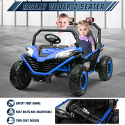 Imagine the thrill in your child’s eyes as they take the driver’s seat of their very own rugged 4WD Kids Ride-On Car UTV, crafted to bring adventure to every outdoor escapade! This striking ride-on truck blends power, style, and safety into one exciting package, designed especially for children aged 3 to 8 years old. Whether it's a sunny afternoon at the park or a backyard race, this ride-on vehicle is ready to deliver hours of imaginative fun and real-world driving excitement. With its bold blue color and lifelike truck appearance, this ride-on car captures the spirit of outdoor exploration and daring play. It’s not just a toy; it’s a gateway to building your child’s confidence, coordination, and motor skills through the immersive experience of “driving” a vehicle built just for them. The 4WD system ensures that your little adventurers can confidently conquer various terrains, from grassy lawns to smooth sidewalks, making this ride-on truck a versatile companion for all their journeys. Unleash the Power of 4WD and Robust Motors At the heart of this thrilling ride-on is a powerful 4WD motor system equipped with four 80W motors that combine strength and endurance. Powered by a rechargeable 24V 10AH battery, it delivers an impressive 1 to 2 hours of continuous playtime on a single charge. This means your kids can enjoy extended rides without constant interruptions, encouraging more outdoor activity and imaginative storytelling as they drive their own vehicle. Conquer Any Terrain with Large 12.6-Inch Wheels and Suspension Designed for adventure seekers, this ride-on truck boasts large 12.6-inch wheels crafted from durable PP material, combined with a spring suspension system for exceptional shock absorption. This means that bumpy paths, grassy fields, and uneven surfaces become part of the fun, not a hindrance. Your child will feel like a real off-road driver, mastering every terrain with ease and excitement. Safe and Comfortable Two-Seater Design Sharing the driving experience doubles the joy! This ride-on truck comfortably seats two children side by side, each supported by a secure 3-point safety belt. With a robust weight capacity of up to 130 pounds, it’s perfect for siblings or best friends to embark on thrilling adventures together. Parents can rest easy knowing that safety is a top priority in this well-engineered ride-on vehicle. Interactive Driving Modes and Parental Control The ride-on car offers two distinct driving modes to fit every child’s needs and parental preferences. Your child can independently steer, accelerate, and brake using the pedals and steering wheel for an authentic driving experience that promotes independence and confidence. For younger riders or extra peace of mind, parents can take control using the included remote, ensuring a safe and controlled ride at all times. Both modes feature a gentle soft start, preventing sudden jolts and giving your little drivers a smooth takeoff every time. Enchanting Lights and Musical Features Transform every ride into a sensory adventure! This ride-on truck includes dynamic LED lights that dazzle as they light up the path ahead, creating a magical aura that captivates kids instantly. The built-in music player with USB and Bluetooth connectivity lets your child enjoy their favorite tunes as they cruise around. Whether it’s driving to energetic beats or calming melodies, the sound and light show adds an extra layer of excitement and fun to their driving experience. Durable and Reliable Build for Long-Lasting Fun Durability meets design with a sturdy metal frame and 22mm thick metal sides, ensuring this ride-on truck withstands the rigors of playtime adventures. The combination of a resilient metal frame with high-quality PP body and tires means this truck isn’t just built for fun but for the long haul. It’s a smart investment that grows with your child through multiple seasons of play. Perfect Gift for Every Occasion Looking for an unforgettable present? This 4WD kids ride-on car truck is an ideal gift for birthdays, Christmas, Thanksgiving, Halloween, or simply as a special surprise to ignite your child’s imagination. Its vibrant color, realistic design, and thrilling features make it a standout toy that any child would cherish and enjoy endlessly. Comprehensive Specifications at a Glance: Color: Bold Blue Drive System: 4WD motor Body Material: Durable PP and metal combination Wheels Material: High-quality PP Battery: Rechargeable 24V 10AH Charging Time: 8 to 12 hours Run Time: 1 to 2 hours per charge Motors: Four 80W motors (4x80W) Seat Width: Approximately 19.6 inches wide Max Load Capacity: 130 lbs Speed Range: 1.2 to 3.7 mph (2-6 km/h) Recommended Age: 3 to 8 years old Overall Dimensions: 47.6" long x 31" wide x 31" high What’s Included in the Package: 1 x Ride-On 4WD UTV Car 1 x Charger for easy battery refills 1 x Remote Control for parental supervision 1 x User Manual guiding safe and fun operation When you choose this ZEOPHOL ride-on truck, you’re not just giving a toy—you’re gifting an experience of adventure, learning, and shared joy. It’s engineered to spark imagination, promote physical activity, and nurture important developmental skills while ensuring children’s safety and comfort. Prepare your kids for unforgettable rides filled with laughter, exploration, and the exhilaration of their very own truck on wheels!