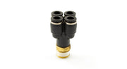 This is 3/8" Male NPT and Splits off to 4 5/16" Push To Connects. We call this Fitting our Banjo Fitting.