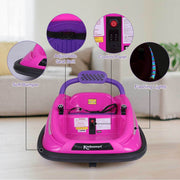 360° Spin Race Car for Kids with Remote Control and LED Lights - 6V Bumper Car Ride-On